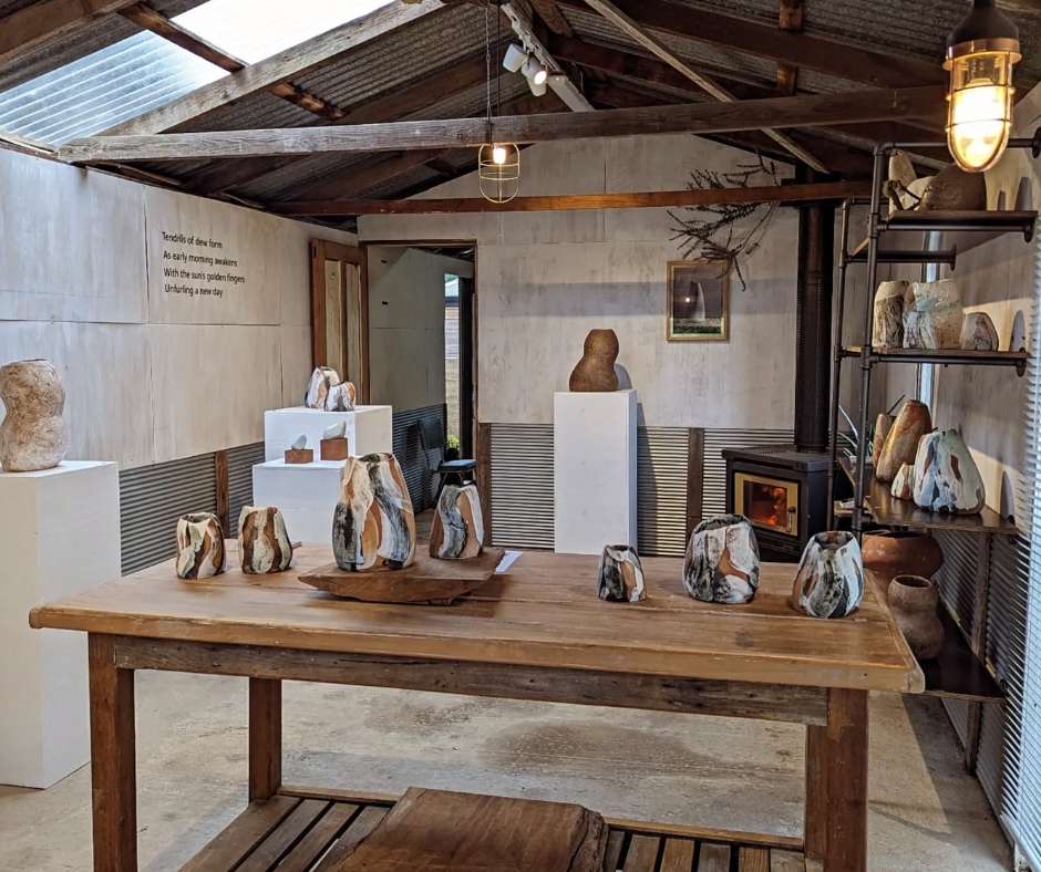 Visitors are invited to view the works at Karen Alexander Sculpture Studio during the Arts Trail, and enjoy the calm and quiet space of the studio. Each form, handbuilt with careful attention to surface and structure, is both familiar and enigmatic, encouraging audiences to reflect on their own place in the world. Through the clay, with textured surfaces and gestural markings they provide a reflection of nature’s elements: air, water, fire and earth that shape and sustain life, fostering a deeper understanding of the rhythm of life.