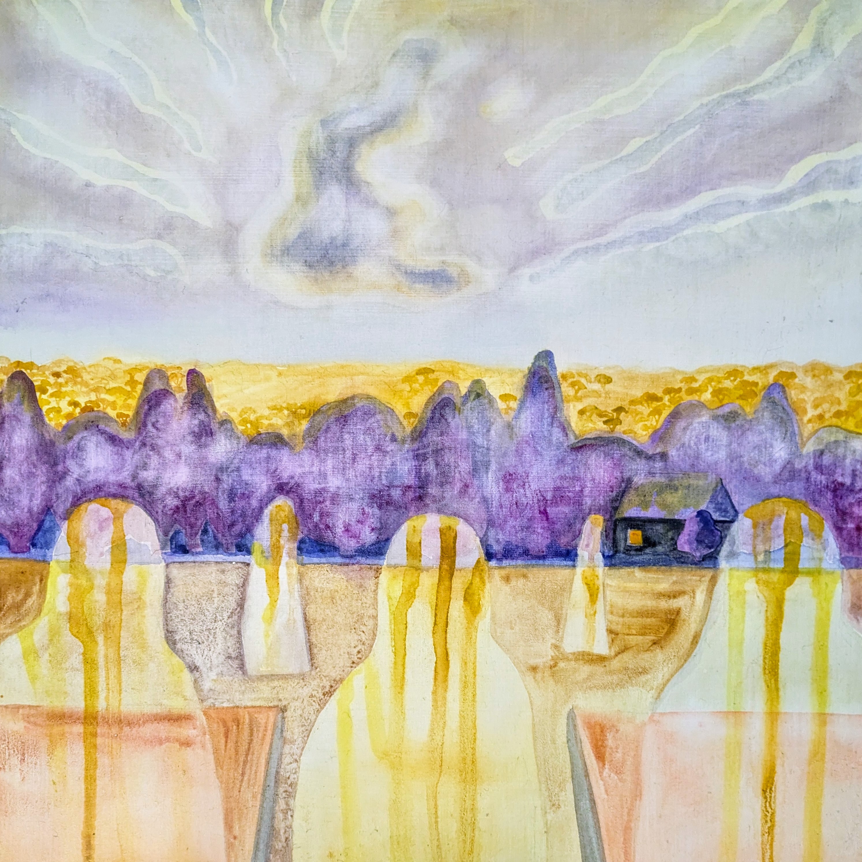Maria is a multidisciplinary artist working at The Camp Studios on Gundungurra and Dharawal Country. She studied painting at Sydney College of the Arts under Lindy Lee. Since then she has held several solo exhibitions, and has participated in many group shows. Her work is held in private collections locally and internationally and has been hung in art prizes, including twice in The Portia Geach Memorial Award. She has been awarded several prizes for drawing from The Royal Art Society. Also a writer, Maria was awarded a Litlink Residency at Varuna in 2018. Her paintings explore the relationship between an interior landscape of symbols and mythology, and the experience of reality encoded in representation. She has a powerful interest in art history, and in experimenting with different media. Her current work explores these ideas through engagement with the landscape of The Southern Highlands.